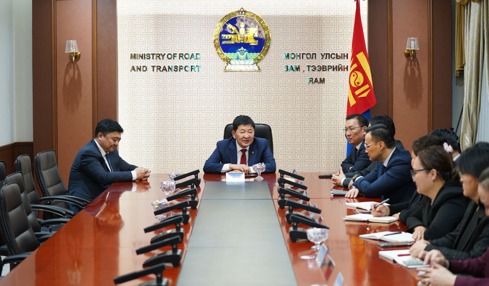 Энэ үеэр Зам, тээврийн сайд Б.Дэлгэрсайхан яамны бүтэц, орон тоо, хэрэгжүүлж байгаа төслүүдийн талаар товч танилцуулаад ажлын амжилт хүслээ.